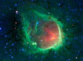 În cazul în care norii de gaz se ciocnesc pentru a crea stele masive, ei ar putea arăta, în momentul coliziunii lor, ca cel din această imagine. Imaginea prezintă bula de gaz RCW120 identificată de telescopul spaţial Spitzer.