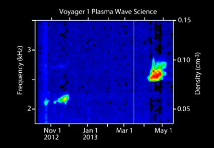 Până în prezent Voyager I a înregistrat două vârfuri de intensitate ale „muzicii plasmei interstelare", unul în perioada octombrie-noiembrie 2012 şi un al doilea în perioada aprilie-mai 2013. Ambele au fost amplificate de exploziile datorate activităţii solare.