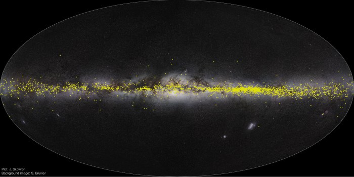 Pentru a crea noua hartă galactică, cercetătorii au folosit date de la Optical Gravitational Lensing Experiment - un proiect ştiinţific de supraveghere a cerului care se derulează de către Universitatea din Varșovia. Mai exact, cercetătorii au dorit date despre cefeide, care sunt un tip unic de stea cu lumină variabilă (cum a fost Steaua Polară până în 1994, când strălucirea acesteia a devenit stabilă). Aceste stele sunt utile cercetătorilor, deoarece pulsează regulat. Adevărata lor luminozitate poate fi calculată și comparată cu luminozitatea lor, așa cum se vede pe Pământ; acest lucru permite măsurarea foarte precisă a distanței la care se află acestea.