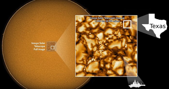 Fundația Națională de Știință (The National Science Foundation), SUA, a publicat primele imagini obținute cu ajutorul Telescopul Solar Daniel K. Inouye, considerate cele mai detaliate imagini ale Soarelui de până în prezent, cu o rezoluție de cel puțin trei ori mai bună decât orice alte imagini ale astrului din sistemul nostru solar. Primul film acoperă o suprafață de 36.500 x 36.500 km, în timp ce al doilea o suprafață de 19.000 x 10.700 km.