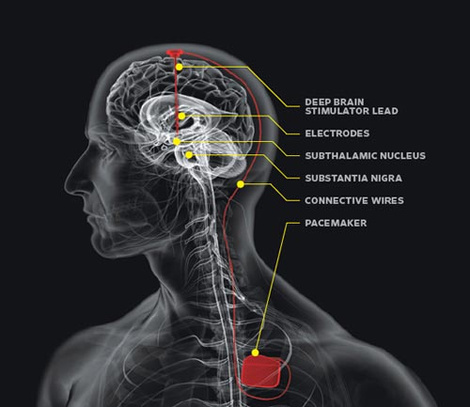Totuși, tratamentul presupune ca pacienții să trăiască având un electrod implantat permanent în creier. Sonda este conectată cu ajutorul unor fire de sub piele (la nivelul scalpului, gâtului și a părții superioare a pieptului) la o baterie care se poate înlocui și care e implantată sub claviculă. Dispozitivul funcționează cam ca un pacemaker cardiac, trimițând un semnal electric constant către o anumită regiune aflată în profunzimea creierului.