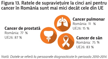 Ratele de supraviețuire la cinci ani pentru tipuri de cancer tratabile, precum cancerul de sân, de prostată și de col uterin, sunt mult sub media UE.