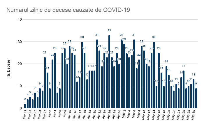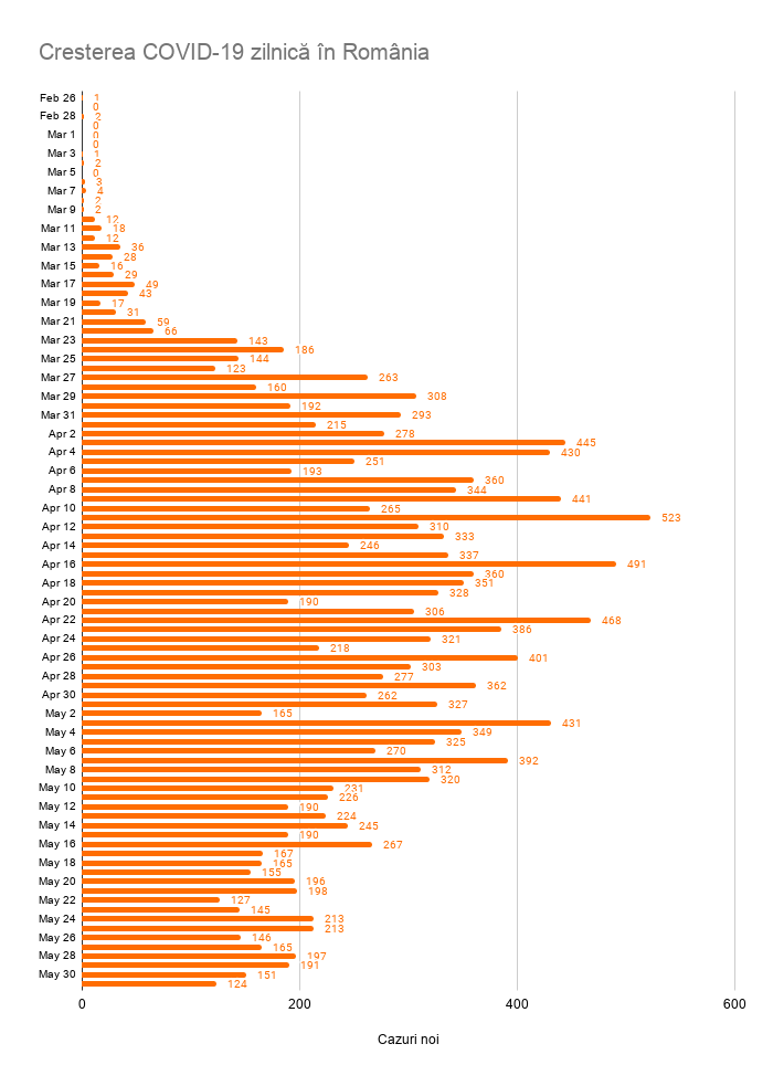 1. Graficul evoluției zilnice a infecției cu virusul SARS-CoV-2 în România