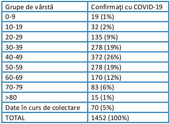 · 160 de noi cazuri de infectare cu SARS-CoV-2 (1.452 - în total).
