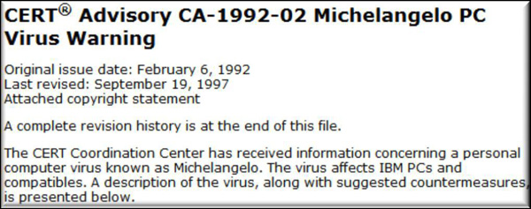Odată ce prima aplicaţie malware a devenit cunoscută, numărul viruşilor a crescut rapid întrucât pasionaţi ai calculatoarelor au întrevăzut oportunitatea de a se angaja într-un fel de vandalism online şi de a-şi dovedi în faţa tovarăşilor cunoştinţele lor tehnice. Atenţia acordată viruşilor de către mass-media era un lucru comun la începutul anilor 90, iar prima panică majoră a survenit odată cu virusul Michelangelo. Precum sutele de viruşi care l-au urmat, Michelangelo a stârnit panica generală în mass-media şi milioane de oameni de pe întregul glob s-au temut că datele lor din calculatoare vor fi şterse. Această temere s-a dovedit a fi nelalocul ei, dar a pus aplicaţiile malware în lumina reflectoarelor care nici până astăzi nu a dispărut.