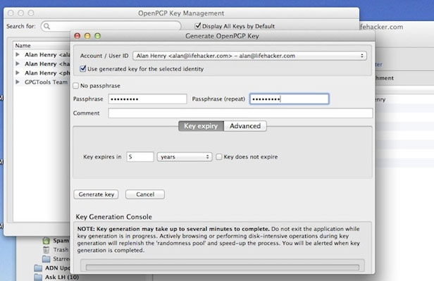 Dacă aveţi mai multe adrese de mail, nu trebuie să generaţi chei separate pentru fiecare cont de mail. Puteţi, desigur, dar cheile nu au nicio legătură cu conturile de mail şi furnizorii acestora. Puteţi folosi aceeaşi cheie publică sau privată pentru mai multe adrese, dacă doriţi să simplificaţi lucrurile.