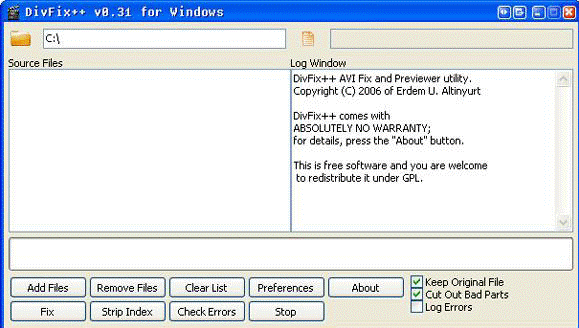 Repararea fişierelor AVI. DivFix+ [divfixpp.sourceforge.net/index.php] este un programel ce vă permite să reparaţi fişierele AVI, prin reconstruirea parţii de index a fişierului, permiţând astfel, playback-ul. Acest program este util pentru unele fişiere torrent corupte. Acest program util nu ocupa mult spaţiu şi de asemenea, vine cu un singur fişier executabil ce nu necesită instalare.