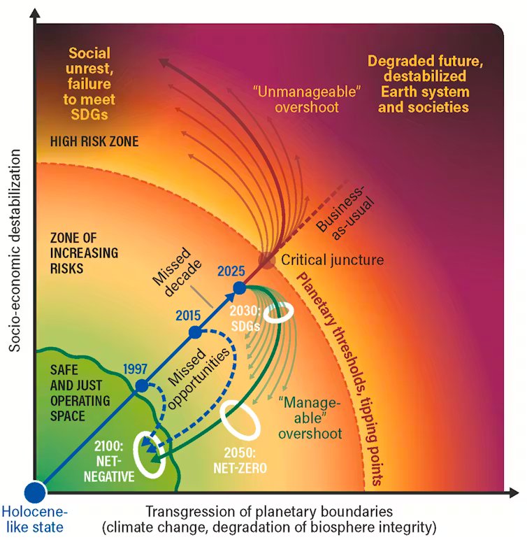 Ne aflăm acum într-un moment critic. Suntem la sau foarte aproape de limitele schimbării mediului provocate de om, care vor afecta fundamental sistemele de susținere a vieții pe Pământ. Aceste riscuri pot declanșa bucle de reacție, precum accelerarea degradării pădurilor tropicale, care ar elibera miliarde de tone de dioxid de carbon, ridicând temperaturile și mai mult.