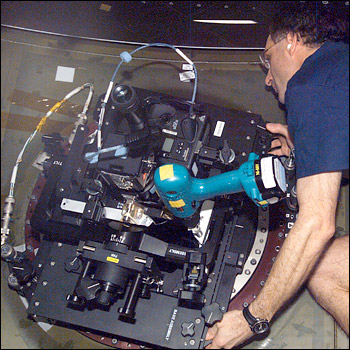 Don Pettit a construit şi instalat „montură scoţiană” pentru a-i permite să facă fotografii pe timp de noapte din Staţia Spaţială Internaţională. Astronauţii folosesc dispozitivul pentru a menţine camera stabilă în timpul expunerilor lungi, în timp ce staţia se mişcă deasupra suprafeţei Pământului. Imaginea a fost făcută pe 5 aprilie 2003.