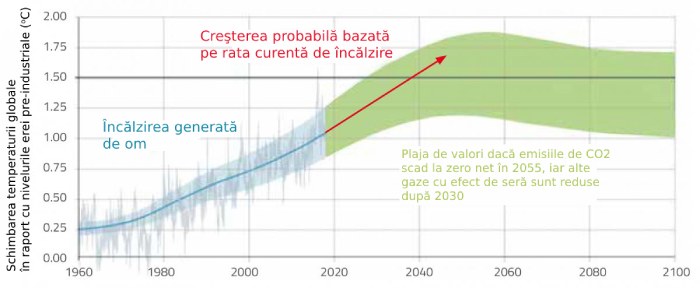 Până astăzi, efectul de seră provocat de activităţile umane a dus la o creştere a temperaturii globale cu circa 1 oC peste nivelul pre-industrial. Dacă încălzirea globală continuă la actuala rată de creştere, temperatura va creşte cu 3-4 oC până la finalul acestui secol.