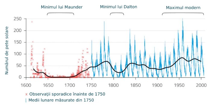 Date privind petele solare începând cu anul 1600. Wikimedia Commons, CC BY-SA 3.0