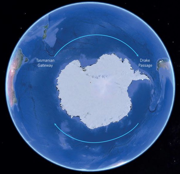 Mişcarea plăcilor tectonice poate avea, de asemenea, o importantă influenţă asupra curenţilor oceanici. De exemplu, crearea Porţii Tasmaniene (Tasmanian Gateway) şi a Strâmtorii Drake - atunci când continentele Australasia şi America de Sud s-au rupt de Antarctica - a dus la formarea curentului Antarctic circumpolar acum 30 de milioane de ani. Curentul a adus apă rece de adâncime la suprafaţă. Această activitate tectonică - combinată cu îngroparea dioxidului de carbon de la formarea munţilor Himalaya - a iniţiat, se crede, Epoca de Gheaţă Neozoică Târzie. Cercetătorii pot prezice mişcarea plăcilor tectonice pentru următoarele 250 de milioane de ani.