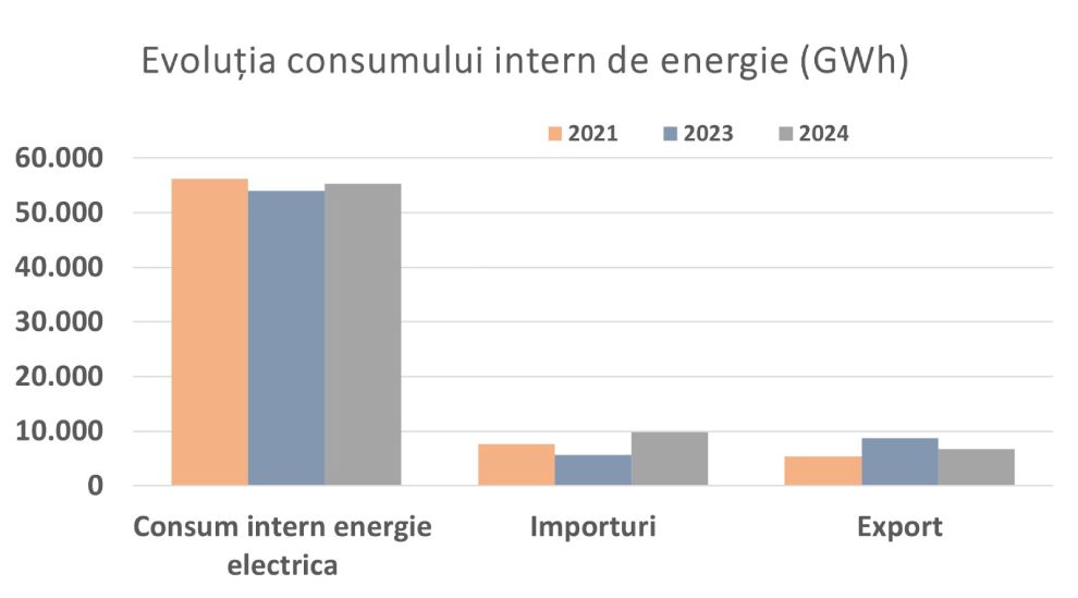 Dimpotrivă, datele din rapoartele de monitorizare ale pieței realizate de ANRE arată că în 2024 consumul intern de energie electrică a fost sub nivelul din 2021, ceea ce indică stagnare sau chiar regres.