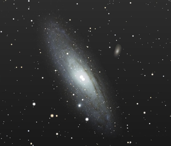 M31 în centru; M110 în dreapta sus; M32 în centru jos