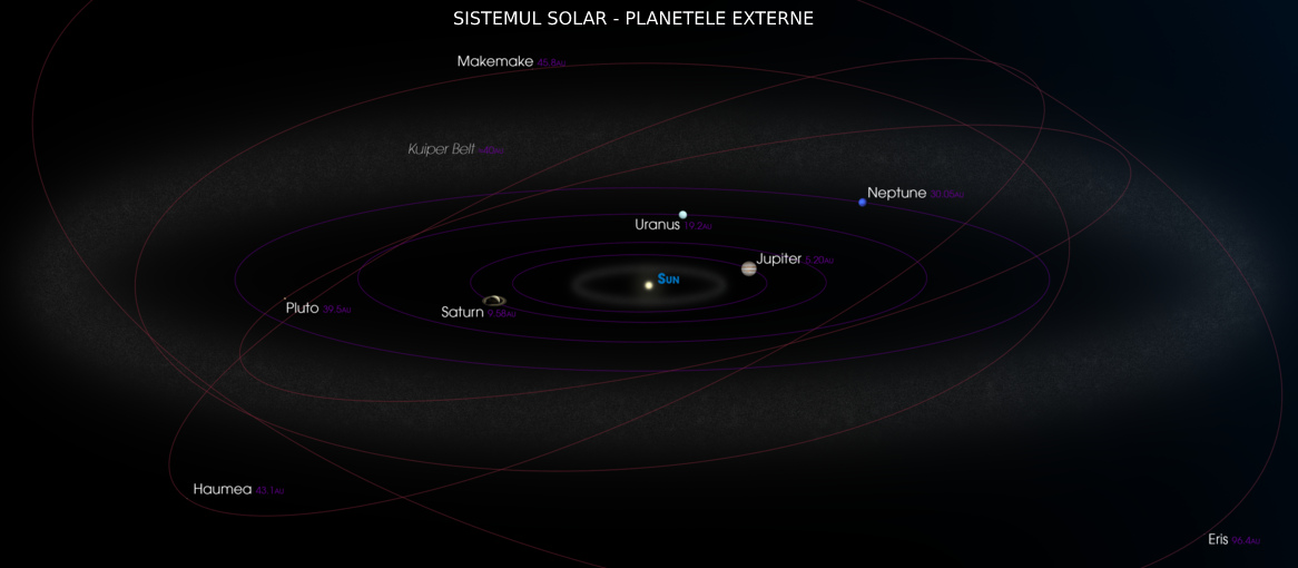Sistemul nostru solar, format în jurul Soarelui, are 8 planete: Mercur, Venus, Pământ, Marte (planete cu suprafaţa solidă), Jupiter, Saturn, Neptun şi Uranus (planete gazoase).