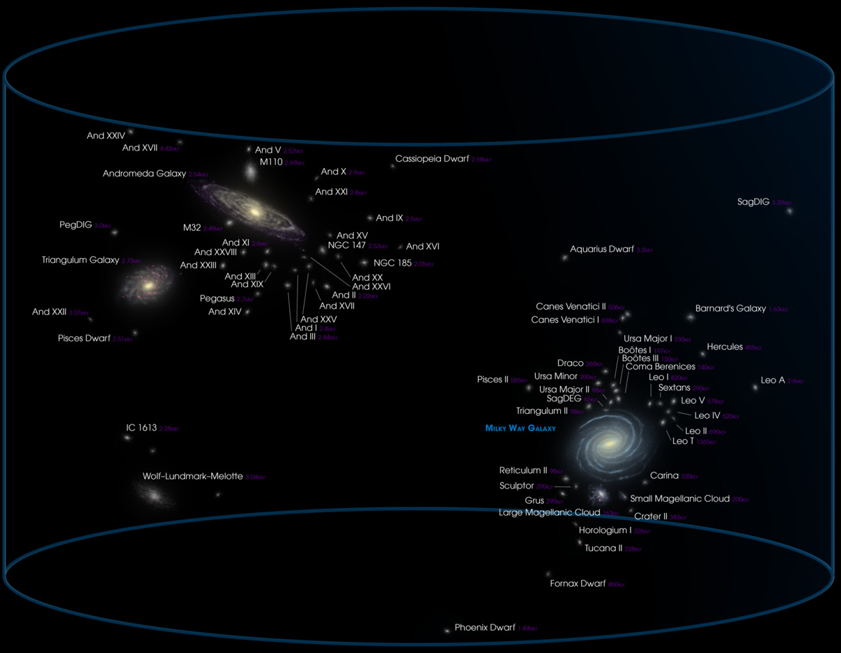 Galaxiile Grupului Local sunt răspândite pe un diametru de 100 milioane de ani-lumină.